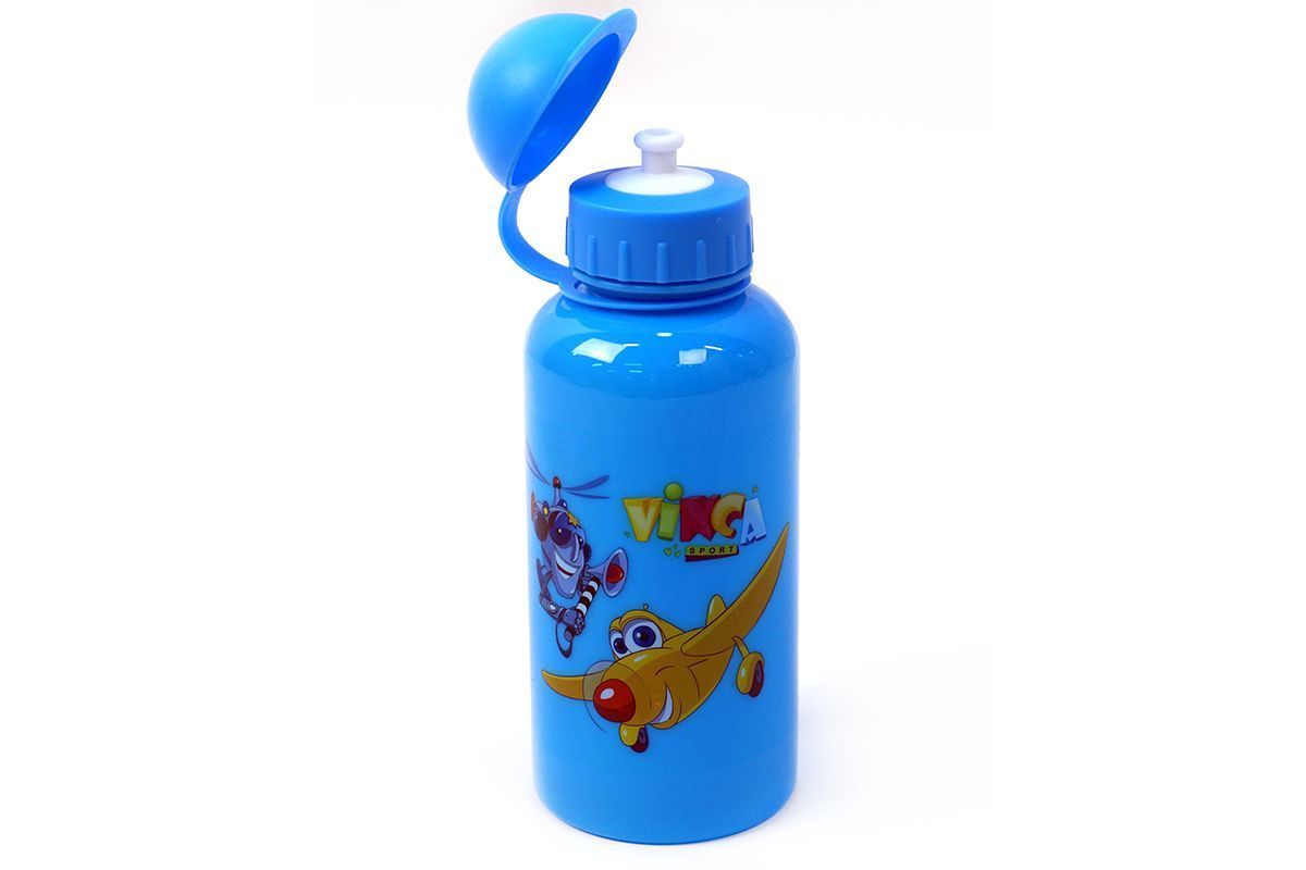 Модель Фляга детская с защитой от пыли 500мл, голубая, рисунок "вертолетики"