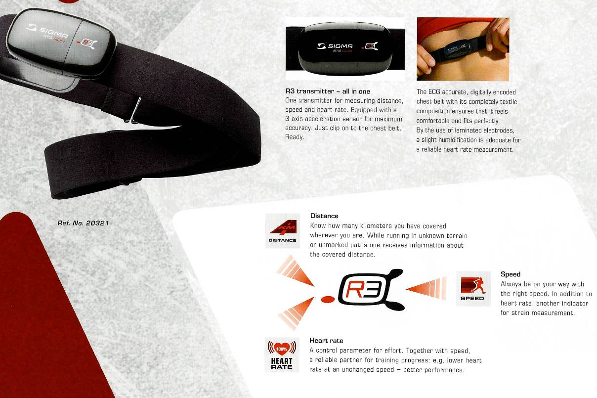 -Нагрудный датчик Sigma R3 Comfortex+, 20321 ,для пульсометров, с эласт.ремнем