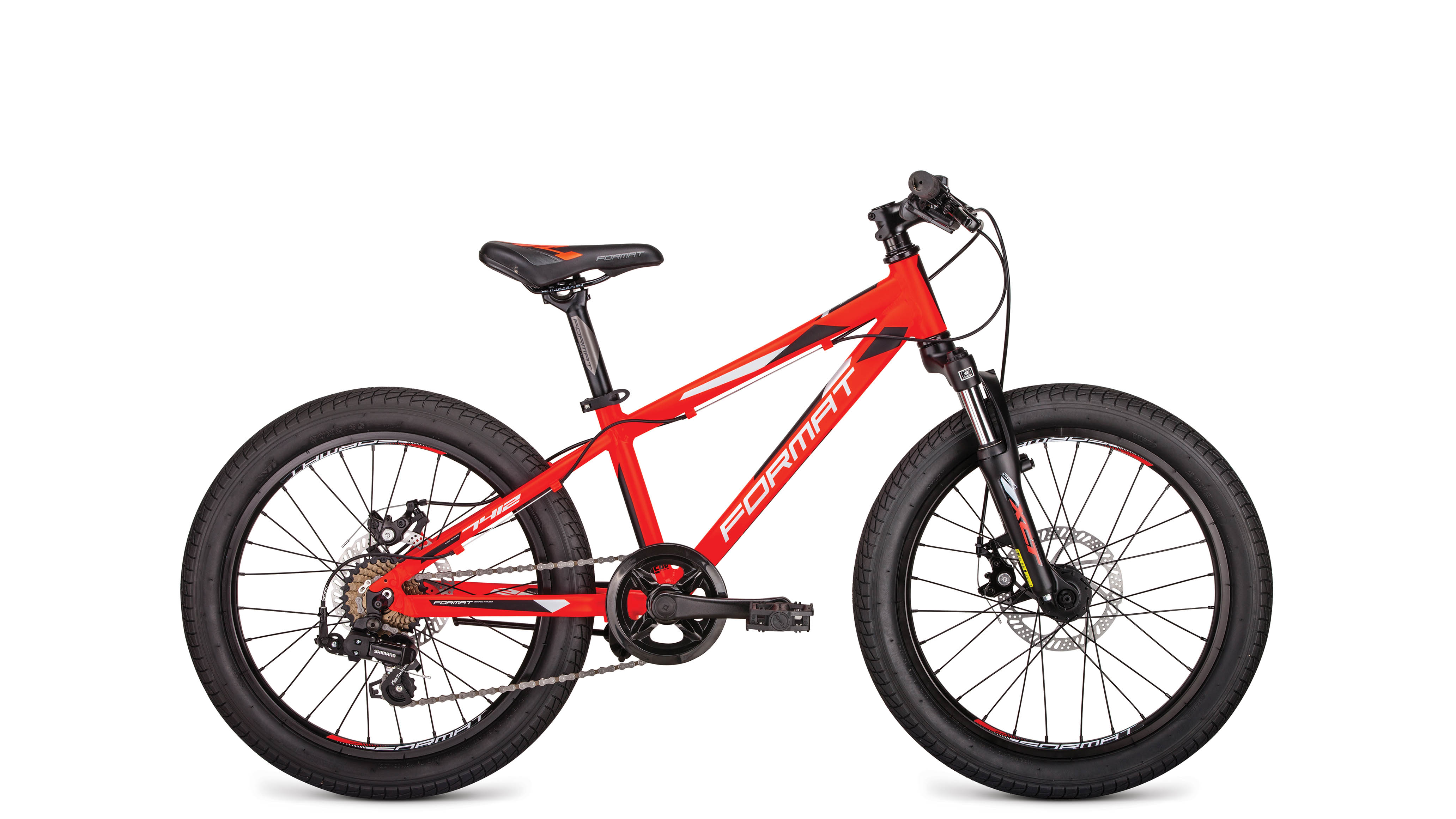 Бренд FORMAT Модель 7412 Год 2019 Серия 7412 Материал рамы Алюминий (Alloy) Рама/описание 20", Junior, алюминиевый сплав 6061 Тип вилки Амортизационная (пружина) Ход вилки, мм 40мм Блокировка амортизатора Нет Вилка/регулировки SR Suntour XCT JR 20" 40мм, пружинная, 9x100мм. Регулировка предварительной нагрузки Диаметр колес 20" Обода Format Double Wall, 28Н, Schrader Резина Kenda Small Block Eight, 20x2,10" Тормоза Дисковые механические Тормоз Tektro M280, 160/160мм Уровень оборудования Начальный Шифтеры Sun Race DLM33 Переключатель задний Shimano Tourney RD-FT35 Кассета Format KDF-711 Каретка Kenli KL-08A, картриджная Шатуны Prowheel V32PP, 32T, 140мм Количество скоростей 7 Рулевая колонка Kenli, внешние чашки, безрезьбовая, 1 1/8"x34x30 Втулка передняя Format, 9x100мм, эксцентрик Пол/возраст Мужской Втулка задняя Format, 10x135мм, эксцентрик Документы